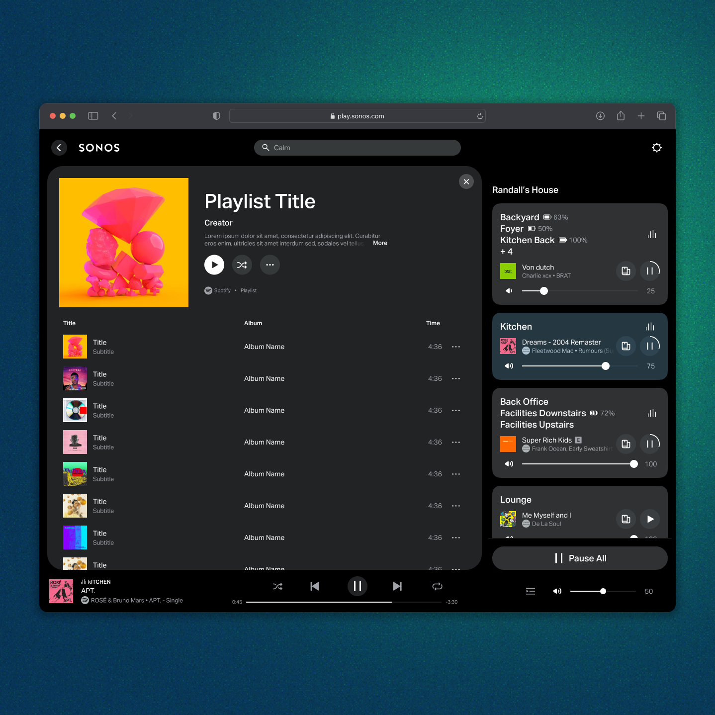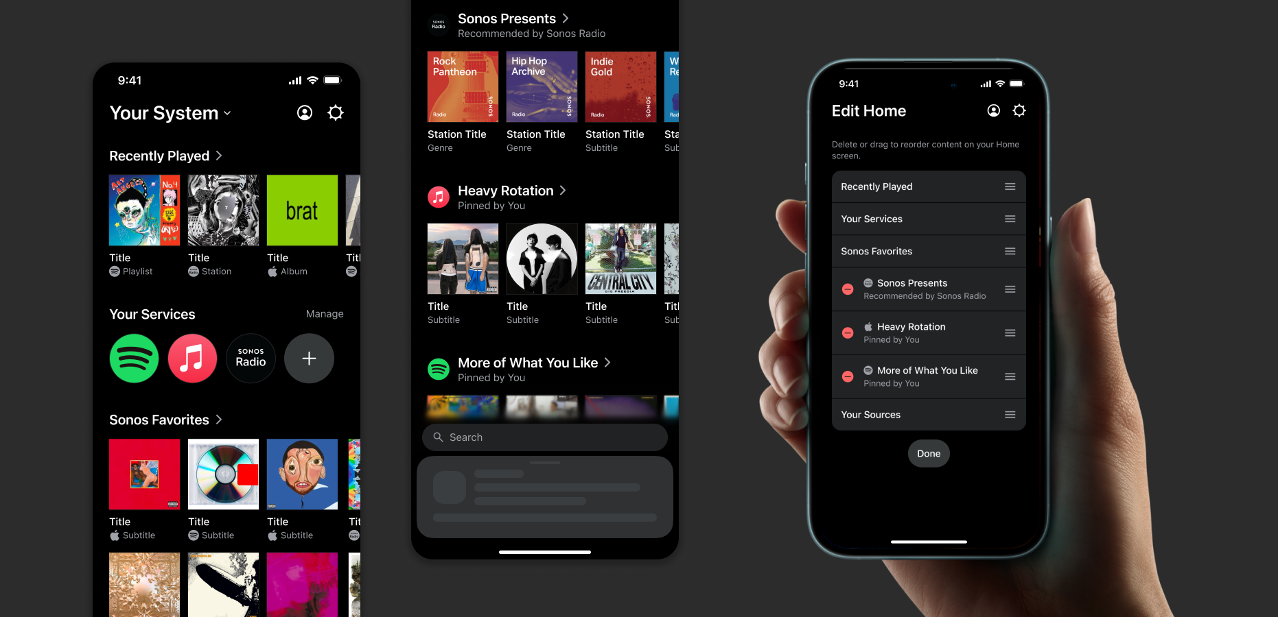We reimagined the Sonos app, shifting from a control-focused design to a content-first experience— more seamlessly integrating users’ favorite streaming services for music, podcasts, radio, and audiobooks, all in one place.